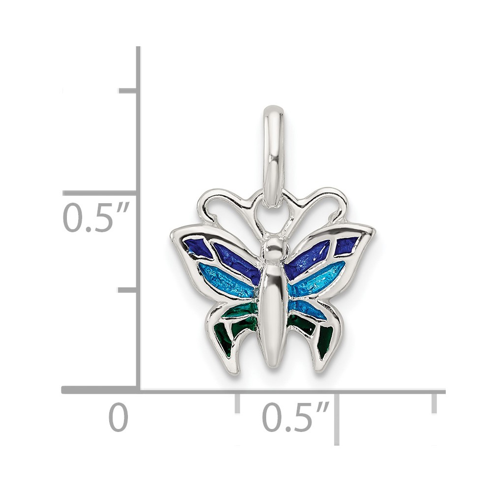 Sterling Silver Polished Enameled Butterfly Pendant