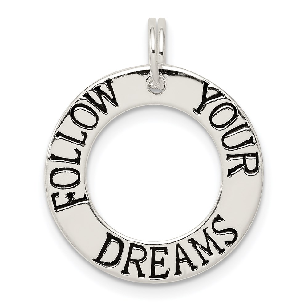 Sterling Silver Polished Enameled Follow Your Dreams Circle Charm