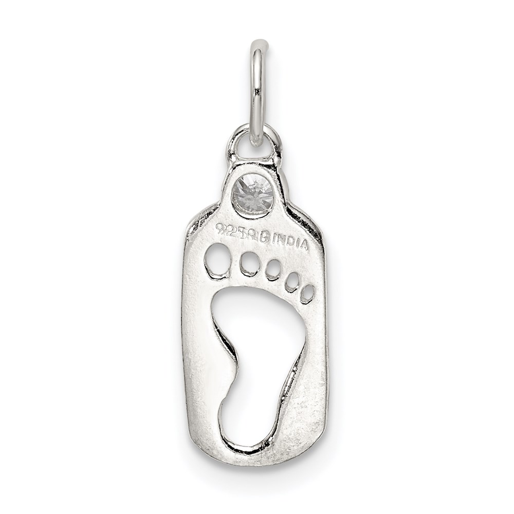 Sterling Silver Polished Footprint CZ Charm