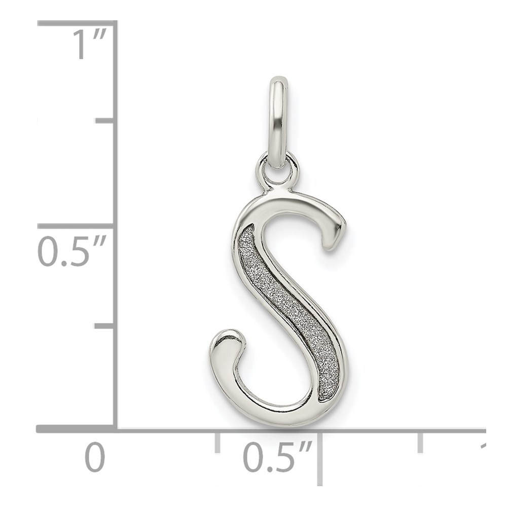 Sterling Silver Polished Glitter Enamel Letter S Initial Charm