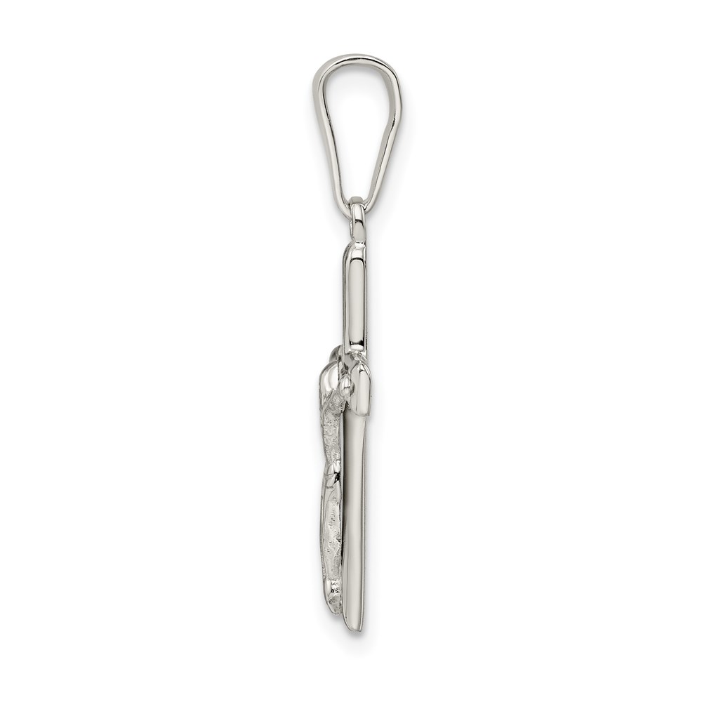 Sterling Silver Polished and Satin Draped Cross Pendant