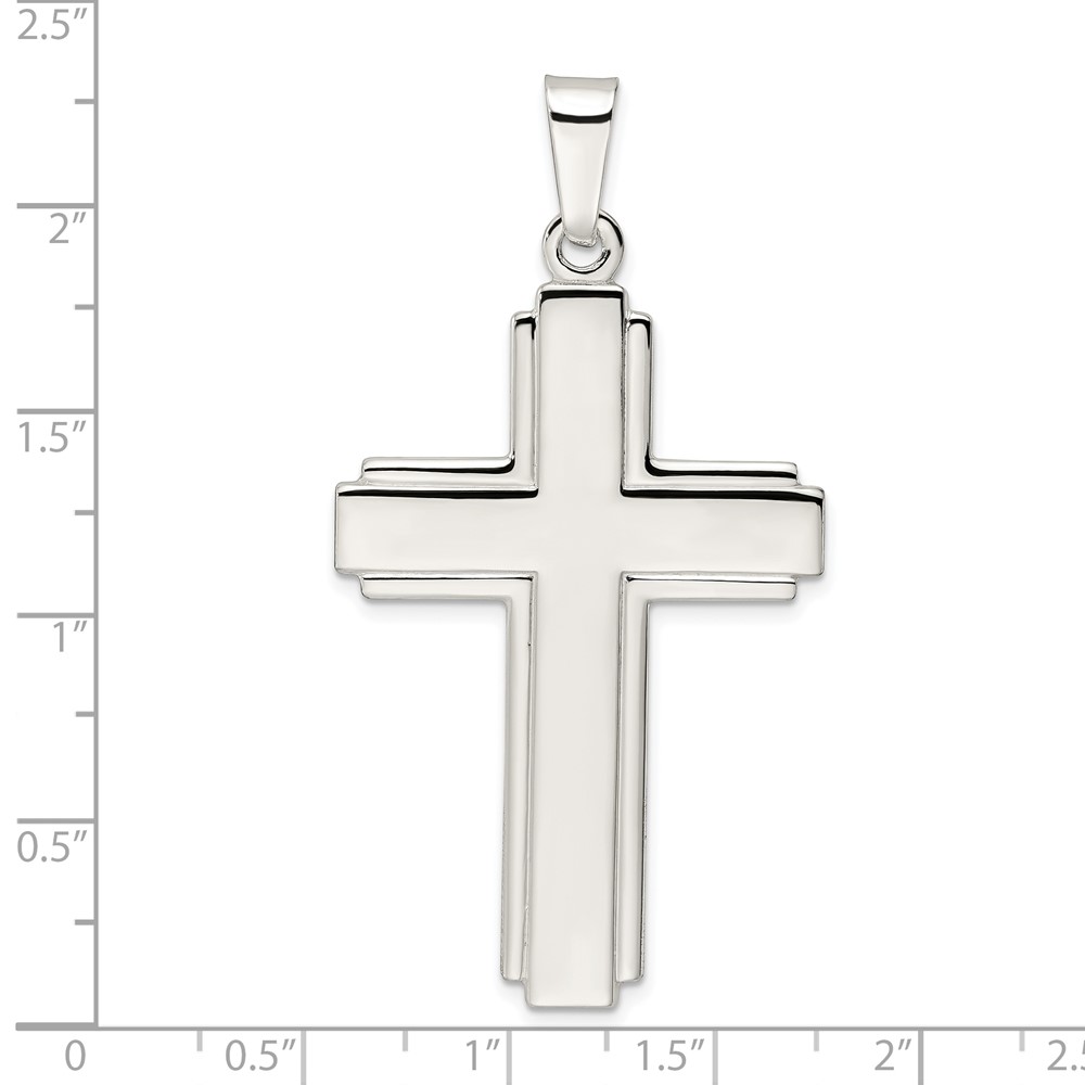 Sterling Silver Polished w/Edge Lines Large Latin Cross Pendant
