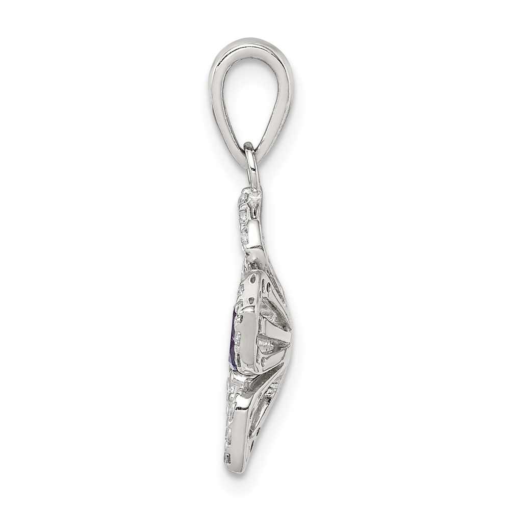 Sterling Silver Purple and Clear CZ Flower Pendant