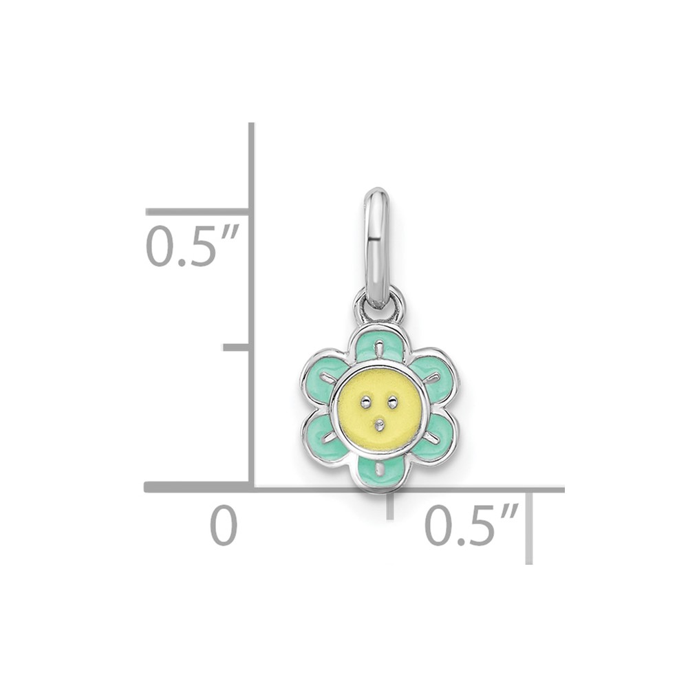 Sterling Silver RH-plated Blue & Yellow Enamel Flower Children’s Pendant