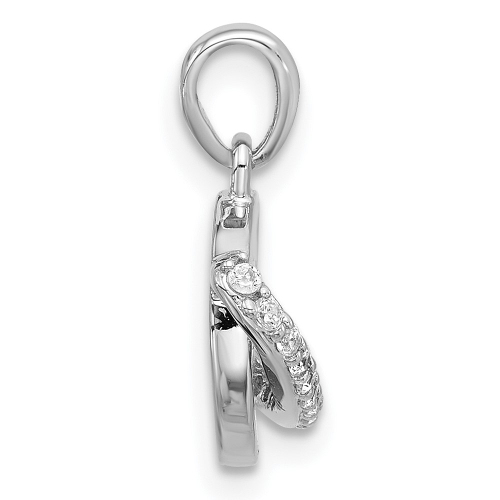 Sterling Silver Rh-plated Polished Round Blue Enamel CZ Planet Pendant