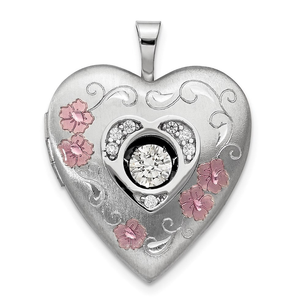Sterling Silver RH-pltd Satin/Polish Enamel 20mm Vibrant CZ Heart Locket