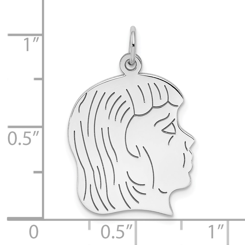 Sterling Silver Rhod-plated ENG. Girl Polished Front/Satin Back Disc Charm