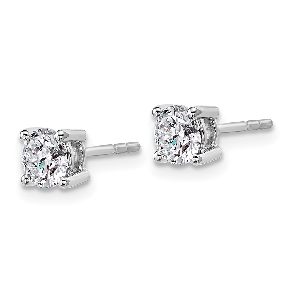 Sterling Silver Rhodium-plated 1 carat Lab Grown Diamond VS+ F+ Round Complete Four Prong Stud Earrings
