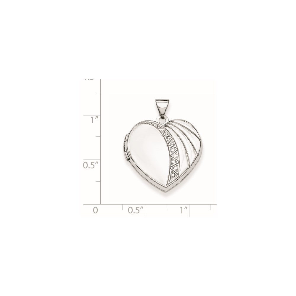 Sterling Silver Rhodium-plated 21mm Textured Heart Locket