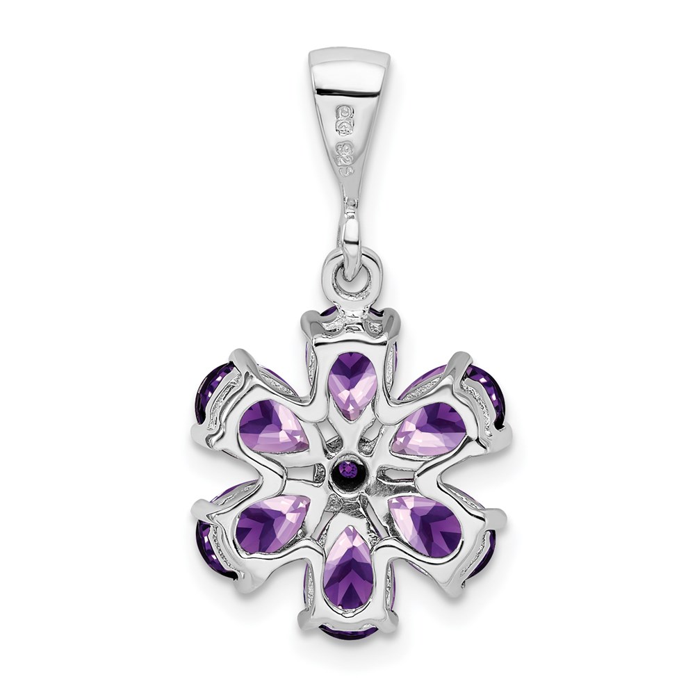 Sterling Silver Rhodium Plated Amethyst and Diamond Flower Pendant