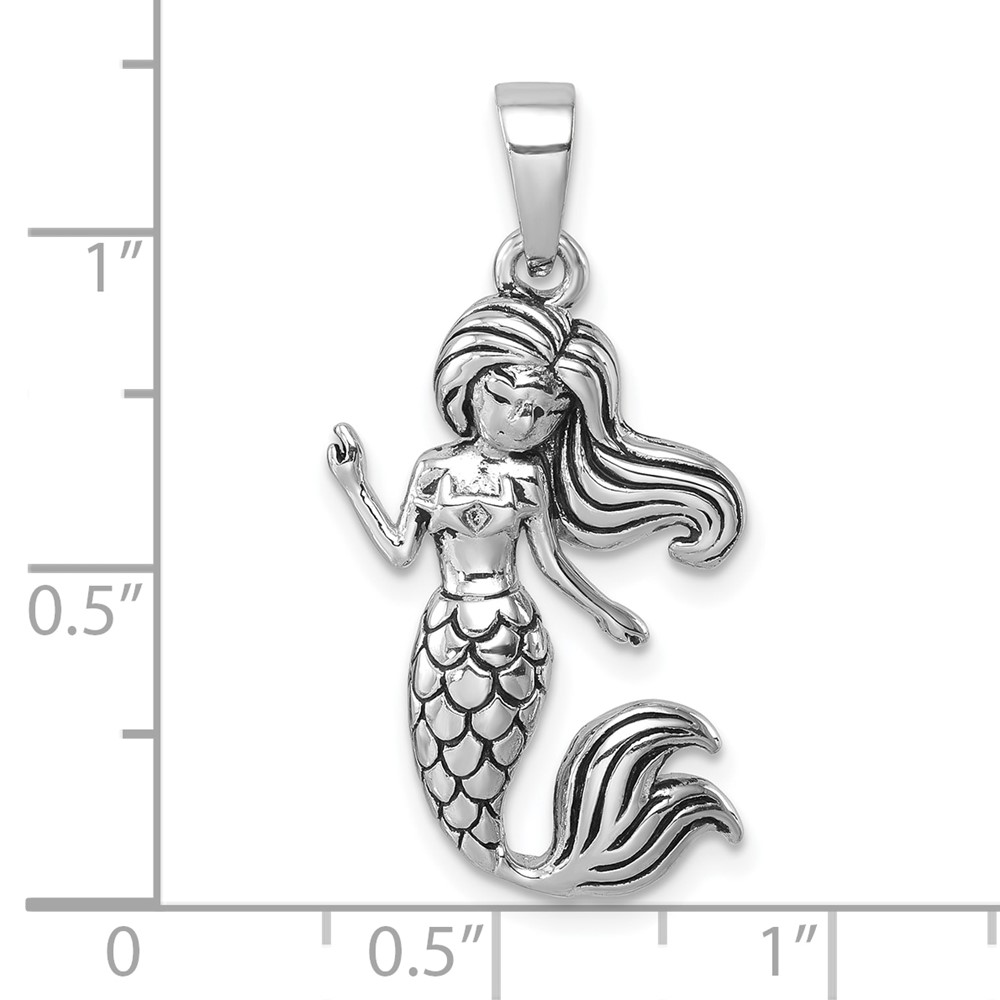Sterling Silver Rhodium-Plated Antiqued Mermaid Pendant