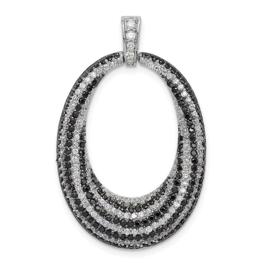 Sterling Silver Rhodium-plated Black and White CZ Open Oval Fancy Pendant