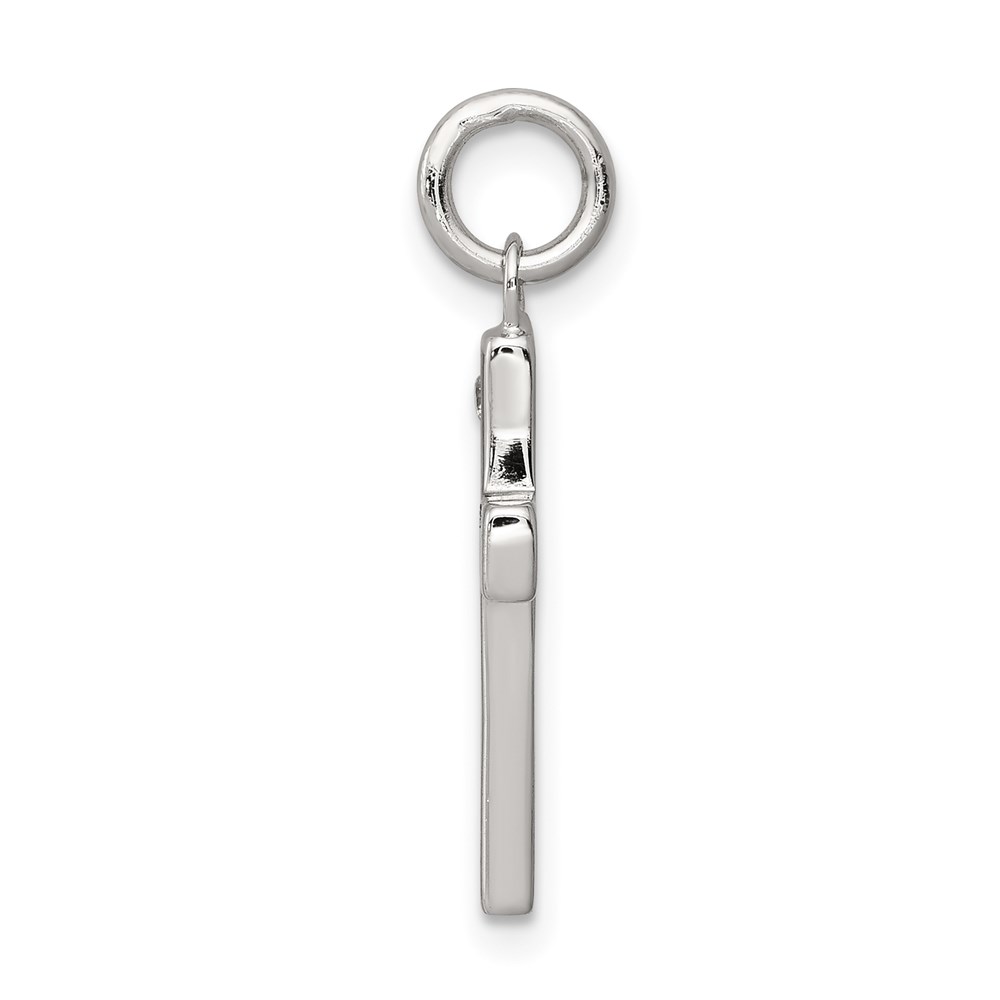 Sterling Silver Rhodium-plated Black Ink FAITH and CZ Antiqued Cross Charm