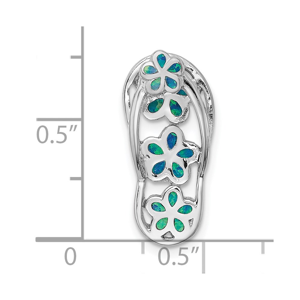 Sterling Silver Rhodium-plated Blue Created Opal Flip Flop Pendant Slide
