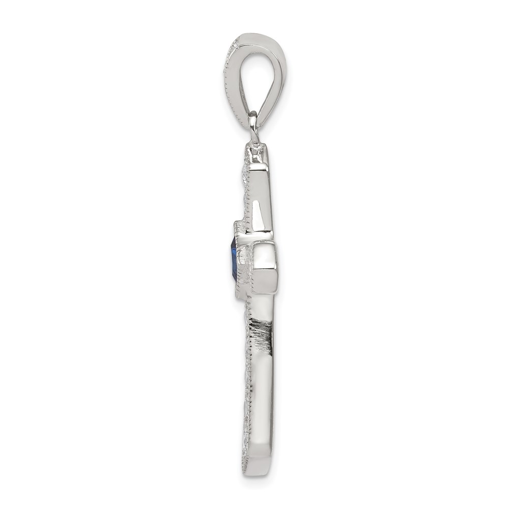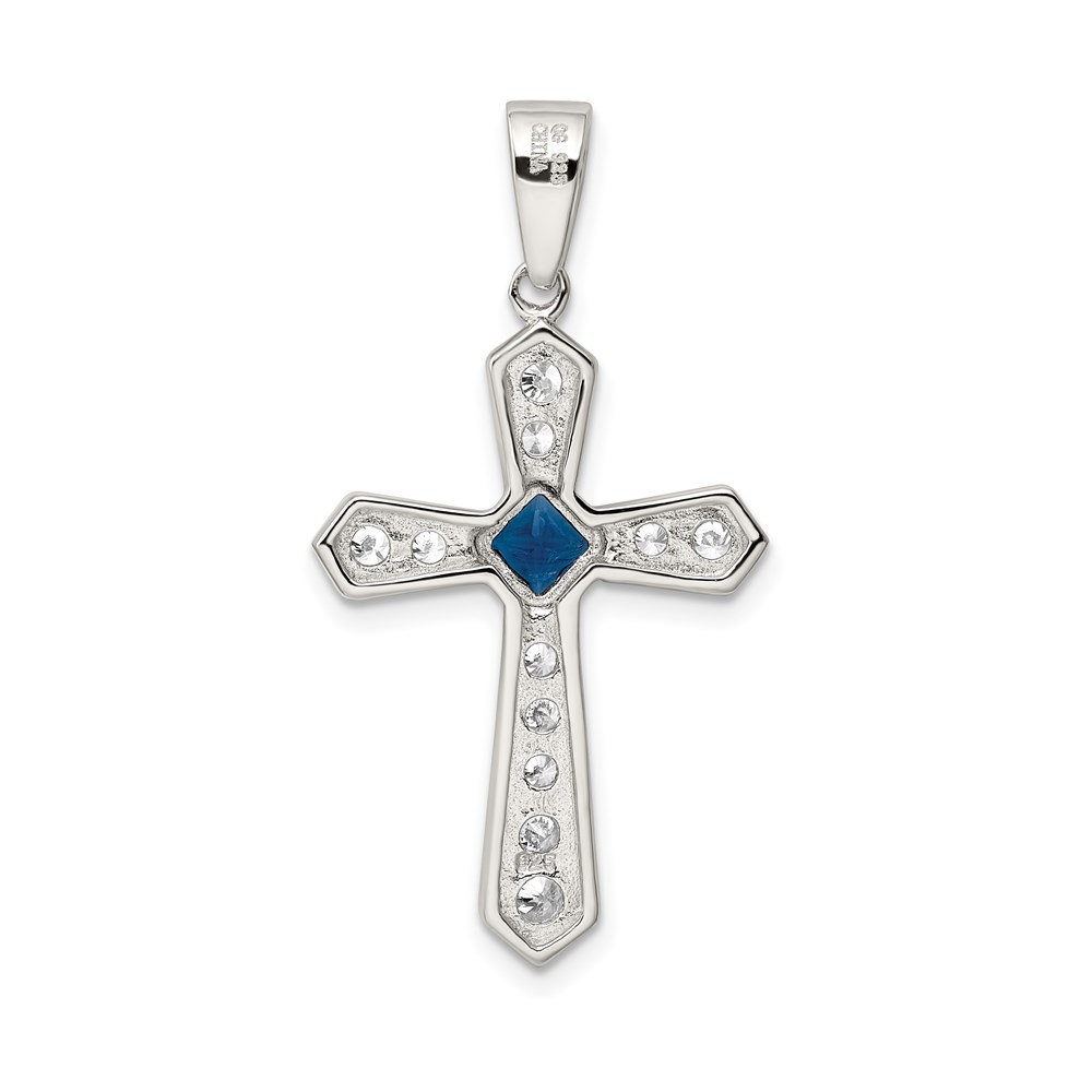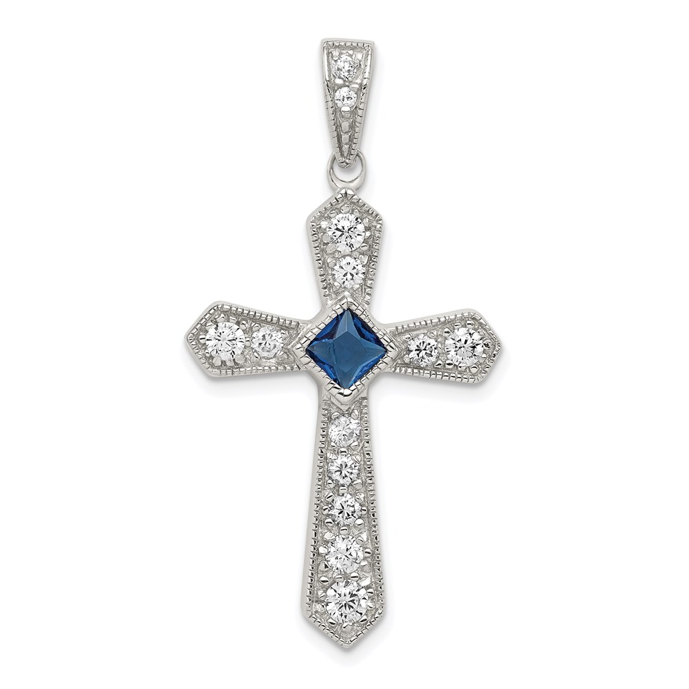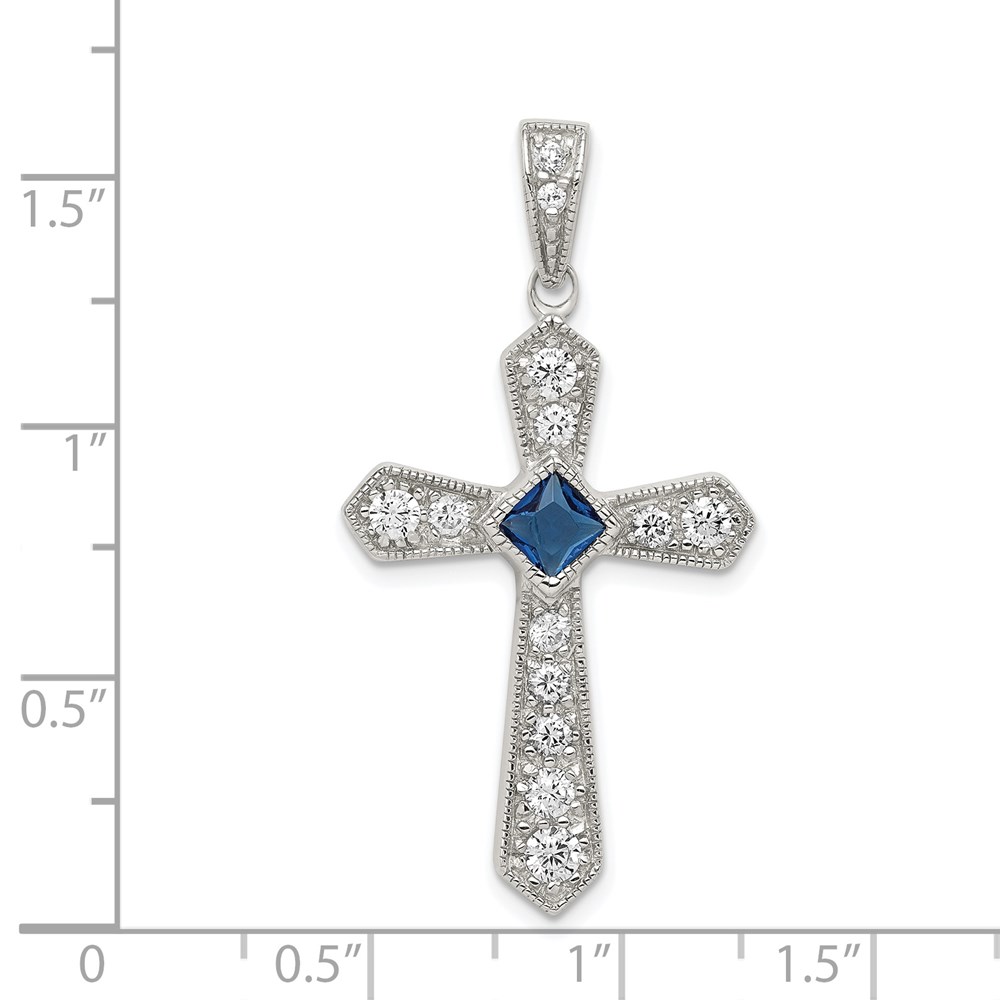 Sterling Silver Rhodium-plated Blue CZ Center & CZ Passion Cross Pendant