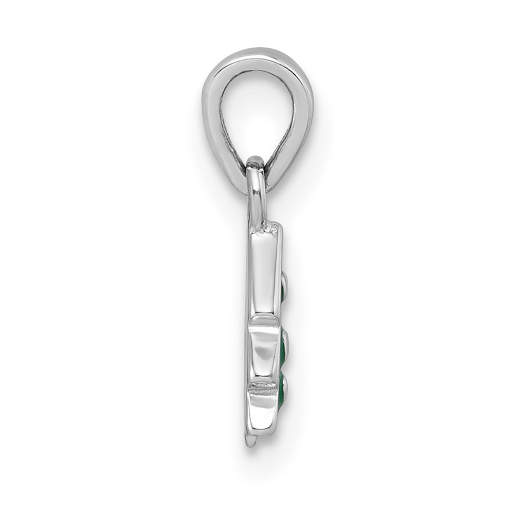 Sterling Silver Rhodium-plated Children’s Green Enamel Christmas Tree with Hearts Pendant