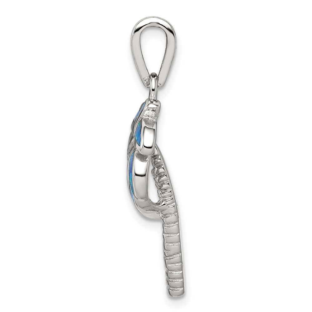Sterling Silver Rhodium-plated Created Blue Opal Inlay Palm Tree Pendant
