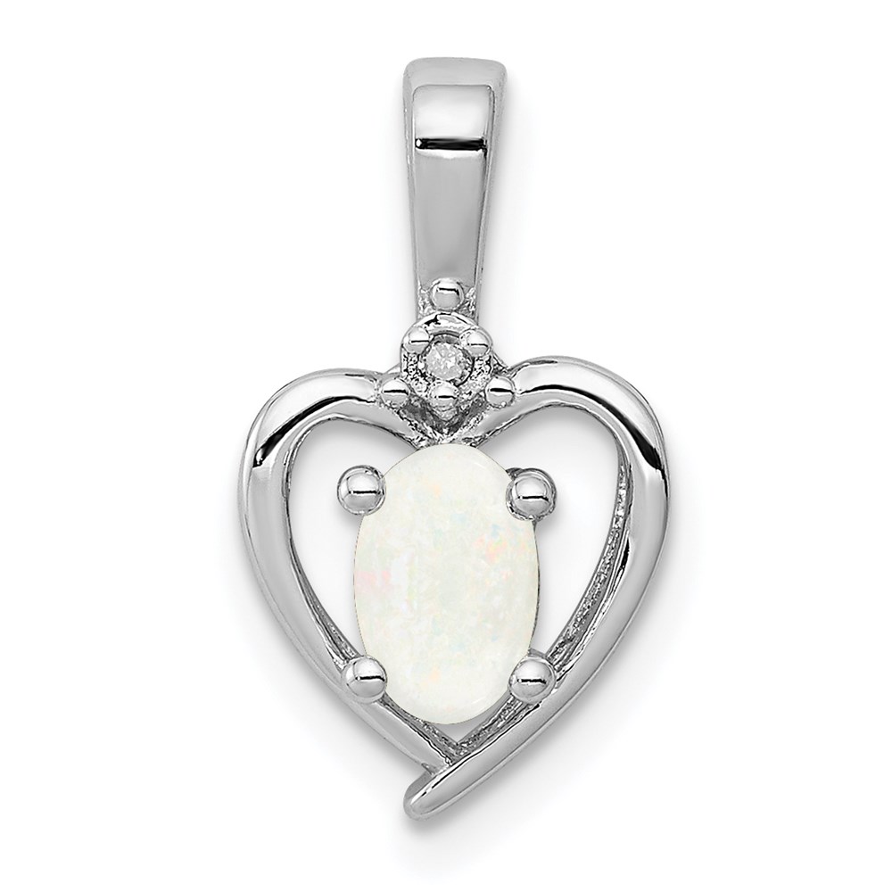 Sterling Silver Rhodium-plated Created Opal & Diam. Pendant