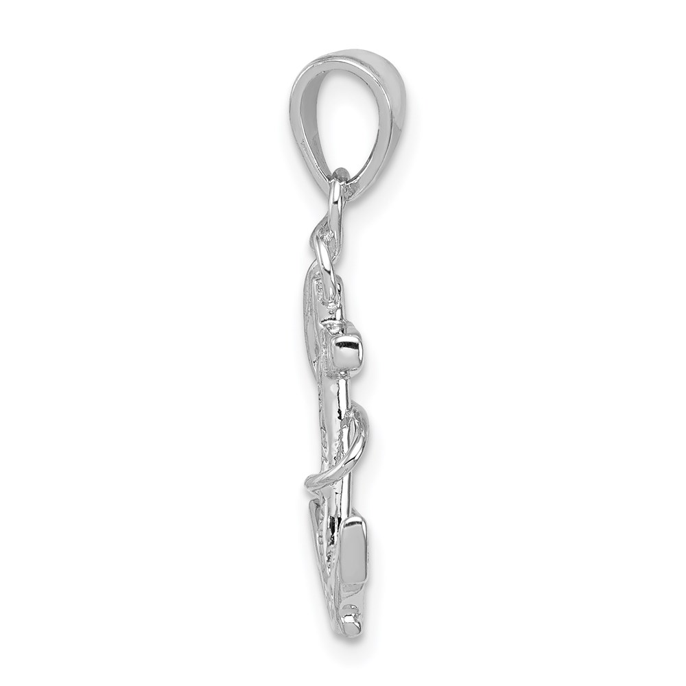 Sterling Silver Rhodium-plated CZ Anchor Pendant