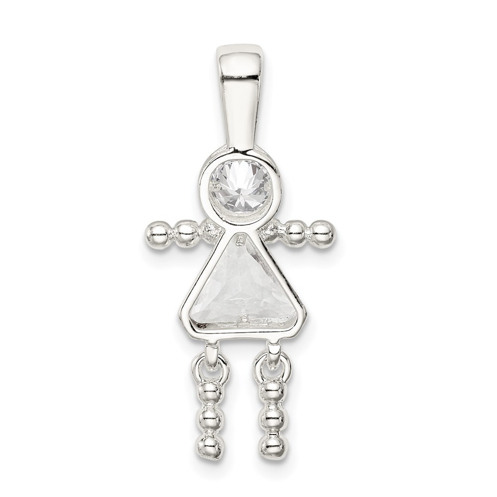Sterling Silver Rhodium-plated CZ & April Glass Girl Pendant