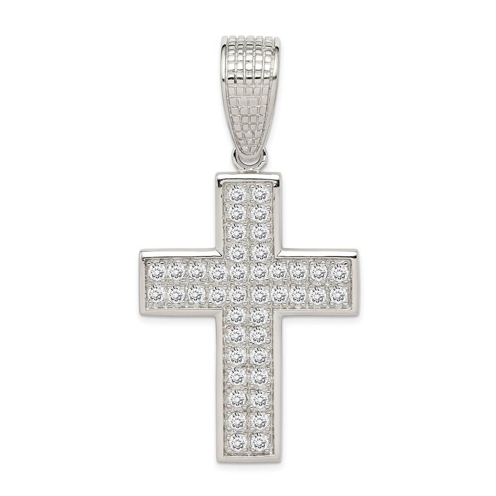 Sterling Silver Rhodium-plated CZ Cross Pendant