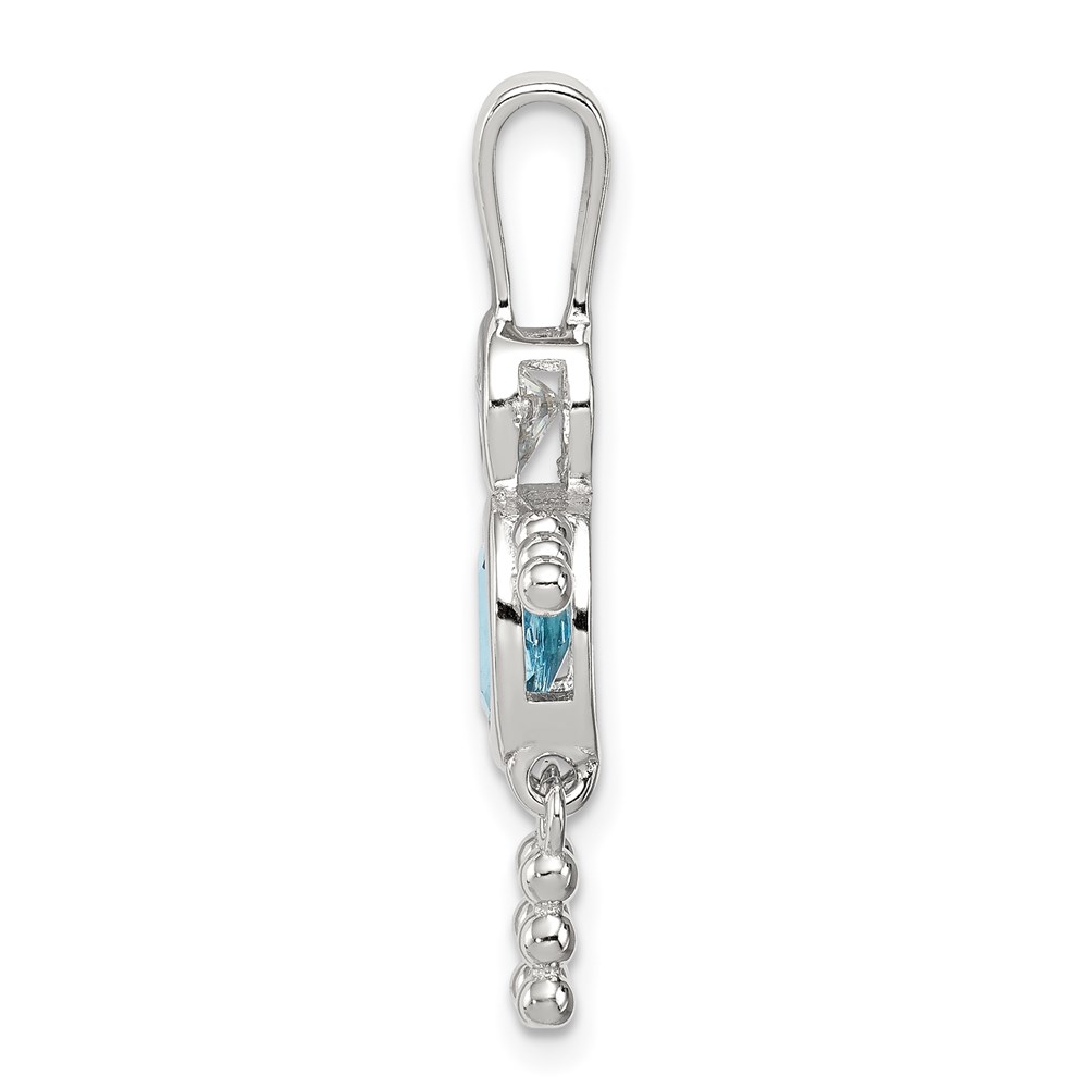 Sterling Silver Rhodium-plated CZ & December Glass Boy Pendant