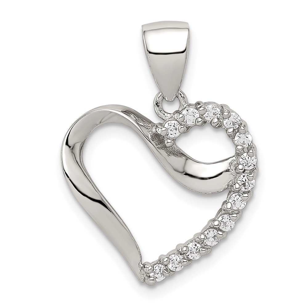 Sterling Silver Rhodium-plated CZ Heart Pendant