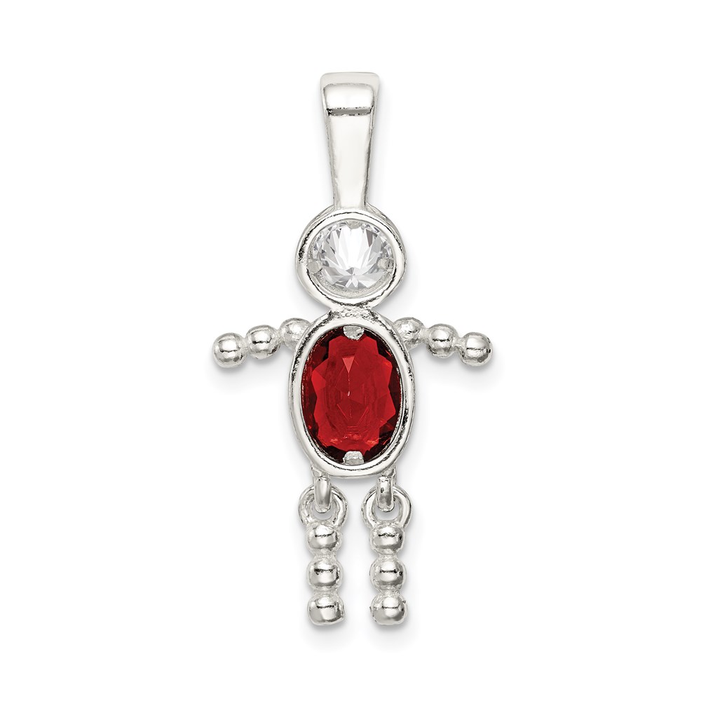 Sterling Silver Rhodium-plated CZ & July Glass Boy Pendant