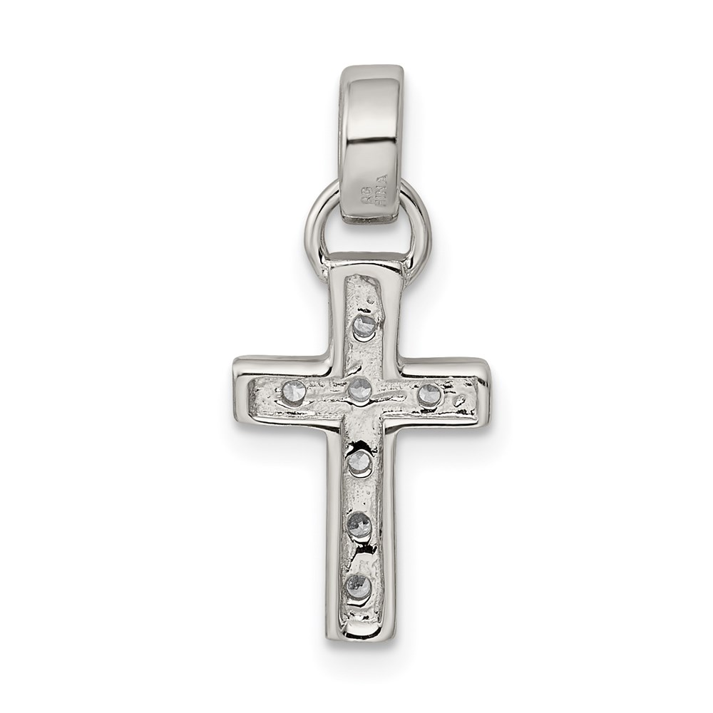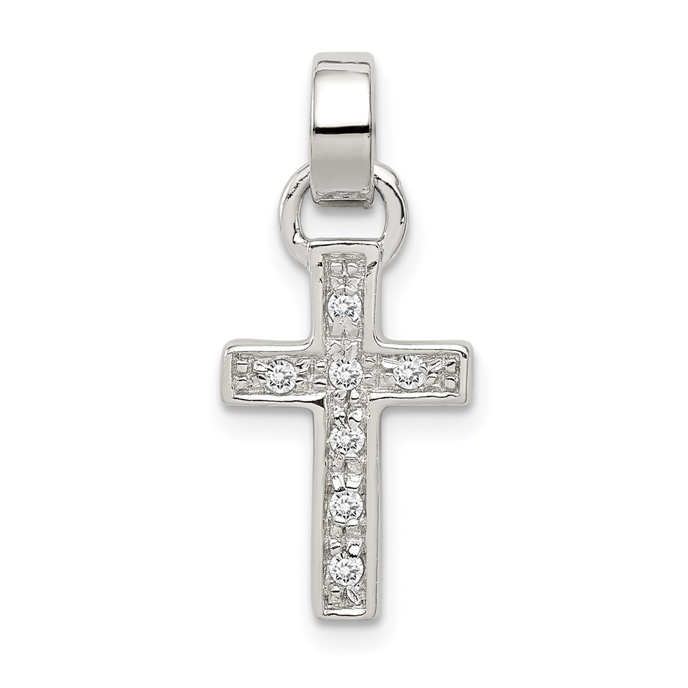 Sterling Silver Rhodium-plated CZ Latin Cross Pendant