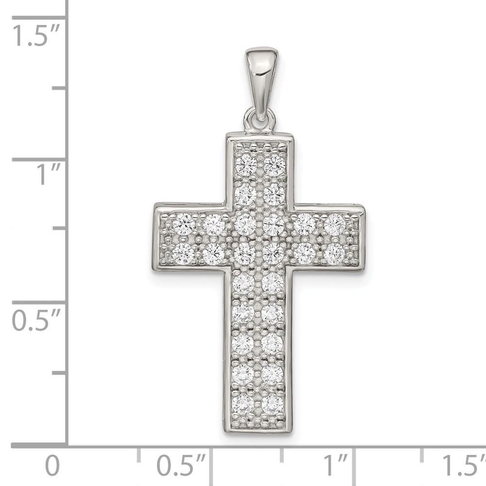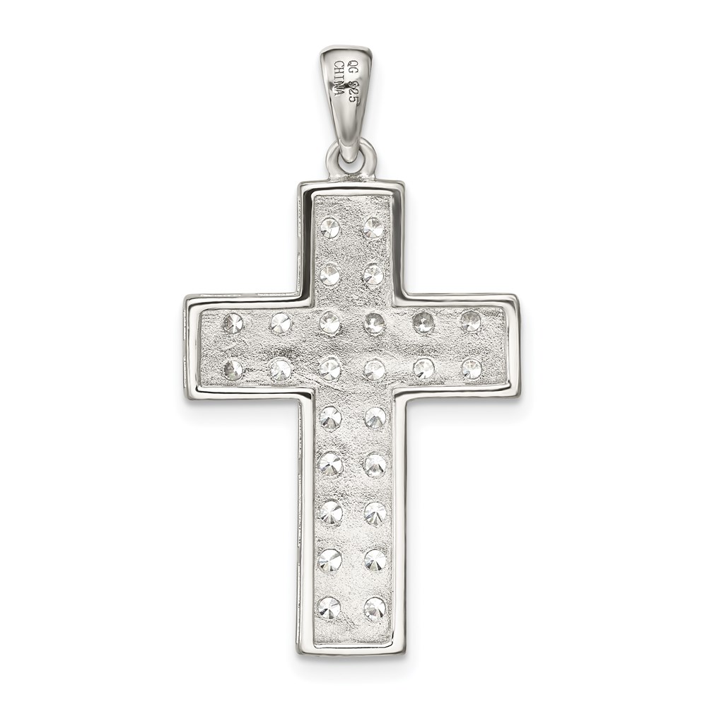 Sterling Silver Rhodium-plated CZ Latin Cross Pendant