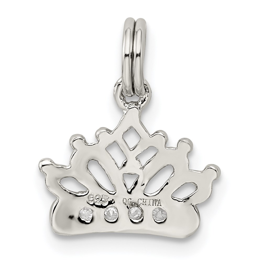 Sterling Silver Rhodium-plated CZ Polished Crown Charm