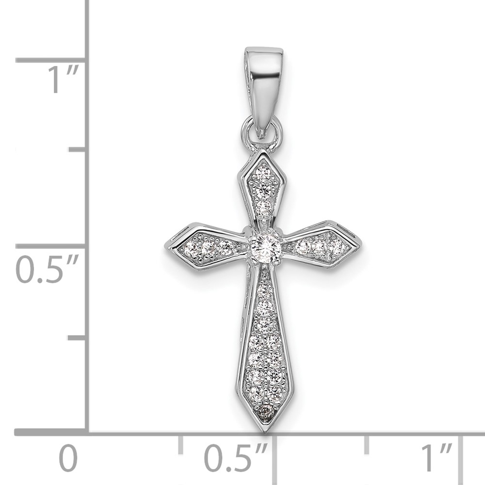 Sterling Silver Rhodium-plated CZ Polished Pointed Cross Pendant