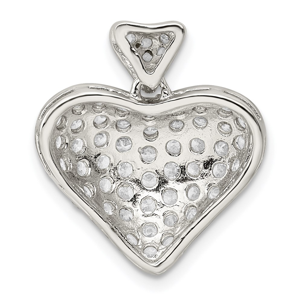 Sterling Silver Rhodium-plated CZ Puffed Heart Pendant