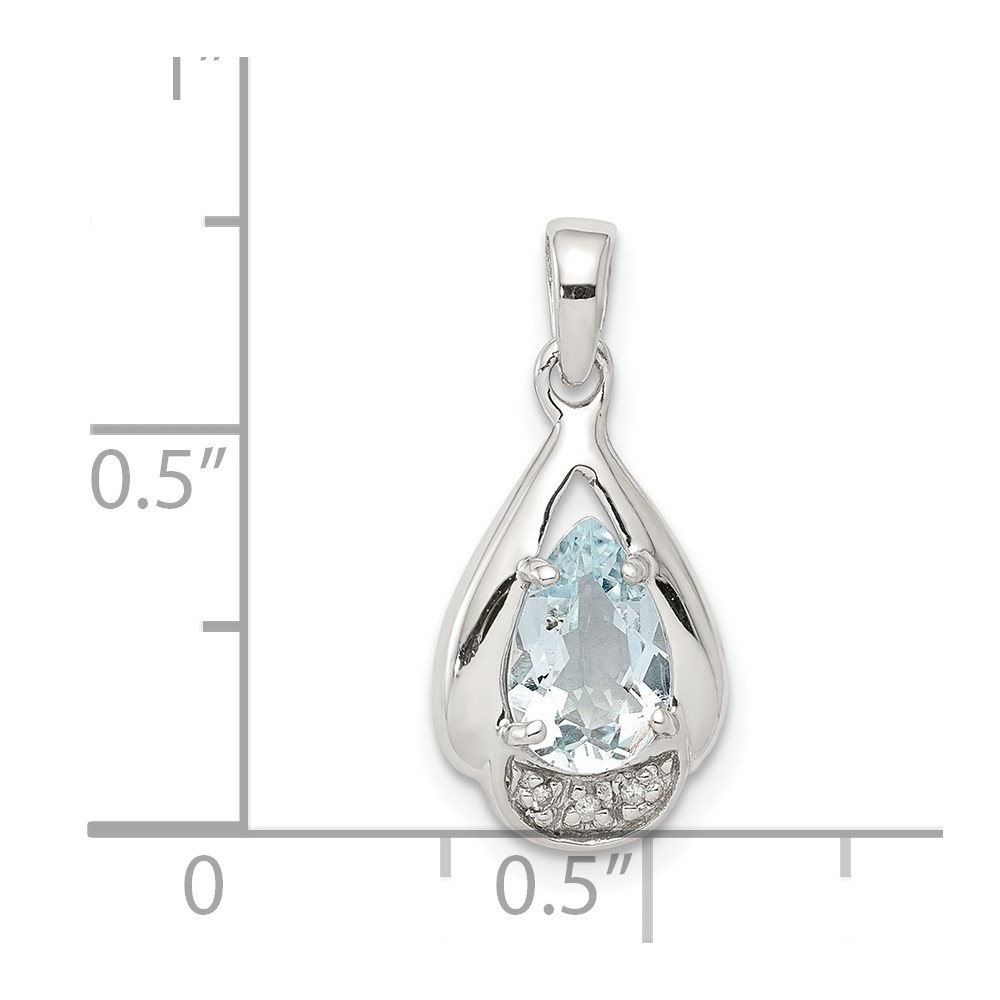 Sterling Silver Rhodium Plated Diamond and Aquamarine Pendant