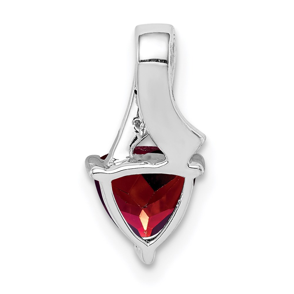 Sterling Silver Rhodium Plated Diamond and Garnet Trillion Pendant