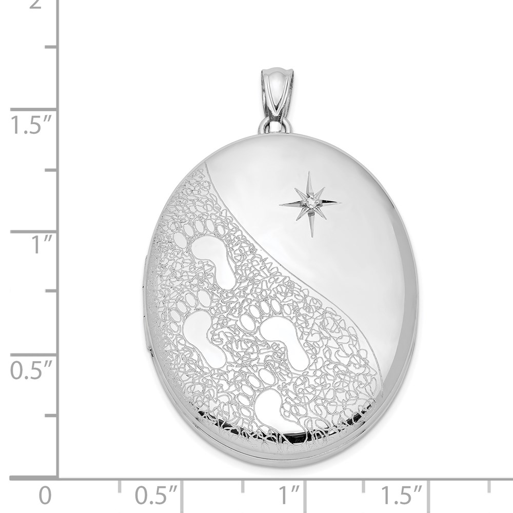 Sterling Silver Rhodium-plated & Diamond Footprints 34mm Oval Locket