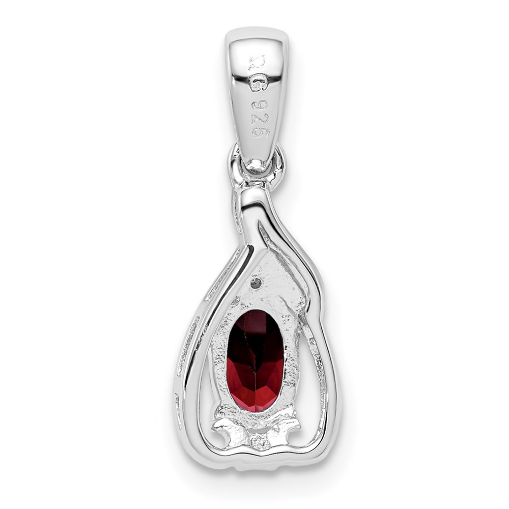 Sterling Silver Rhodium Plated Diamond & Garnet Oval Pendant