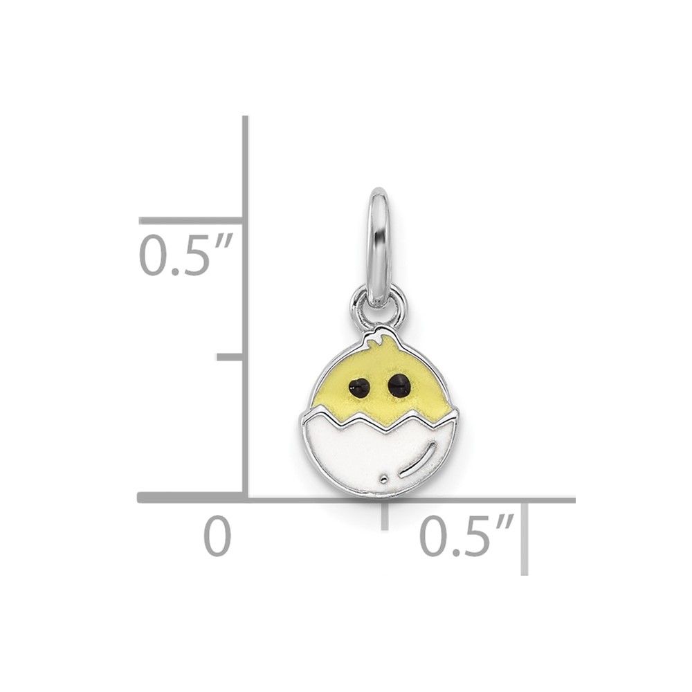 Sterling Silver Rhodium-plated Enameled Chick in Egg Children’s Pendant