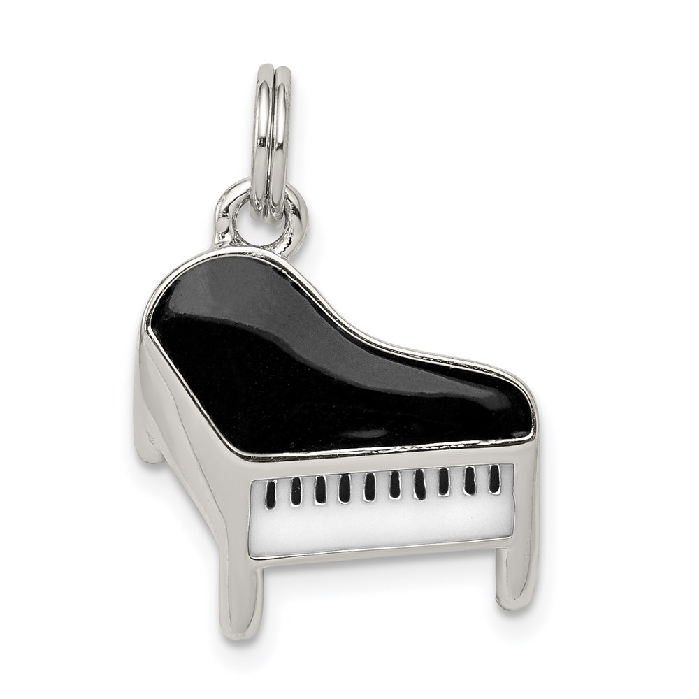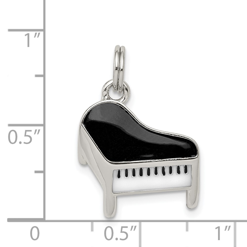Sterling Silver Rhodium-plated Enameled Piano Charm
