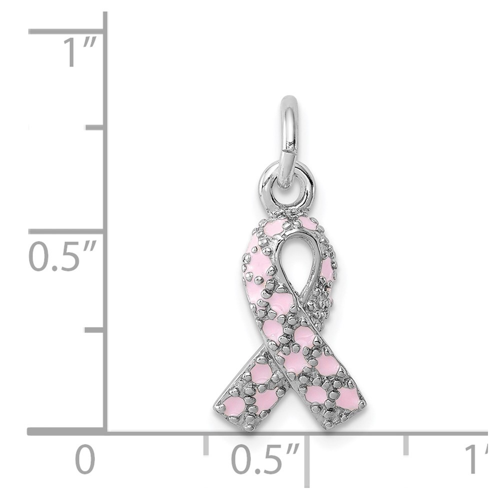 Sterling Silver Rhodium-plated Enameled Pink Ribbon Charm