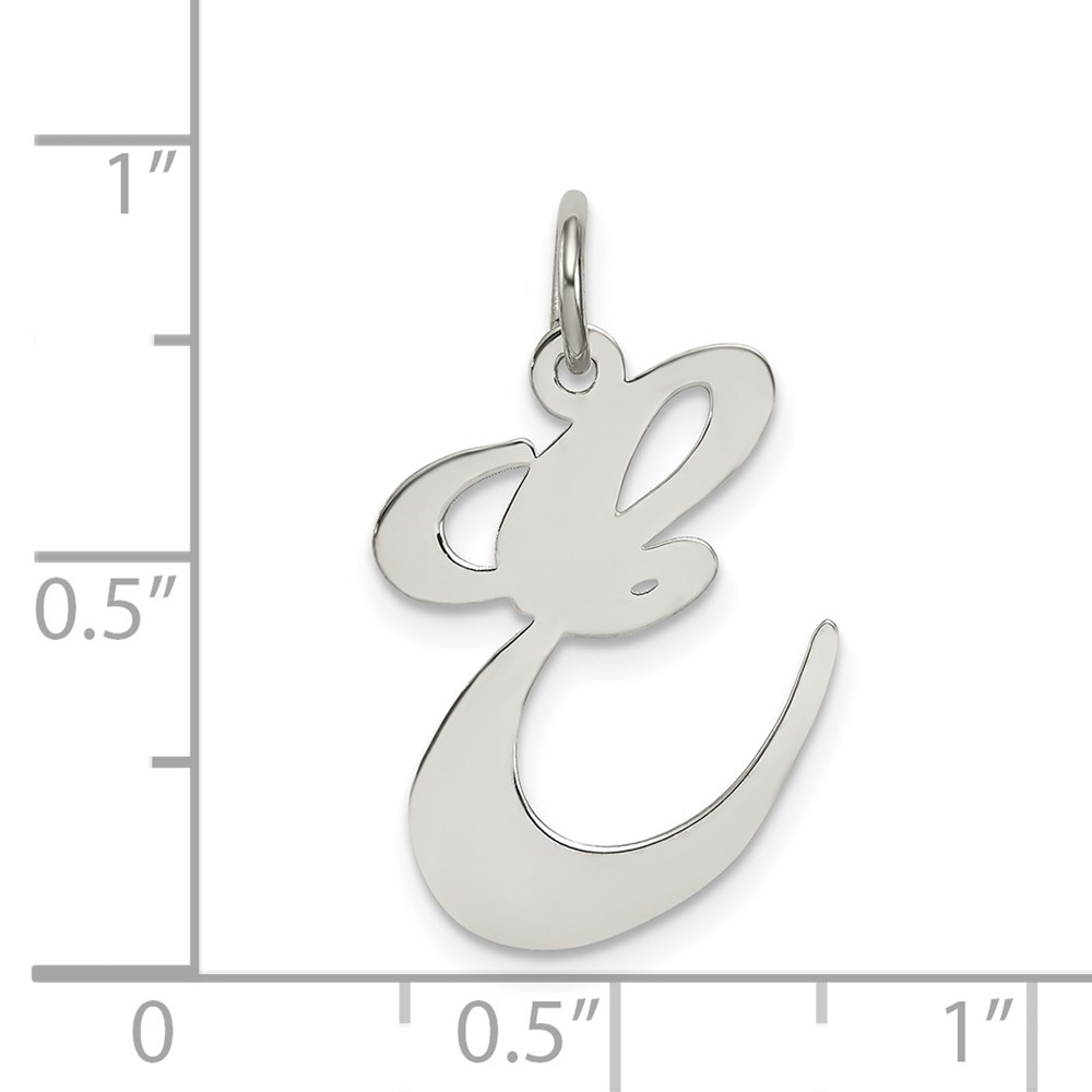 Sterling Silver Rhodium-plated Fancy Script Letter E Initial Charm