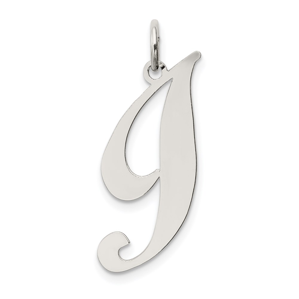 Sterling Silver Rhodium-plated Fancy Script Letter I Initial Charm