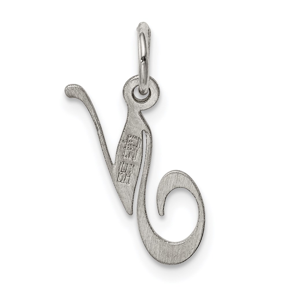 Sterling Silver Rhodium-plated Fancy Script Letter N Initial Charm