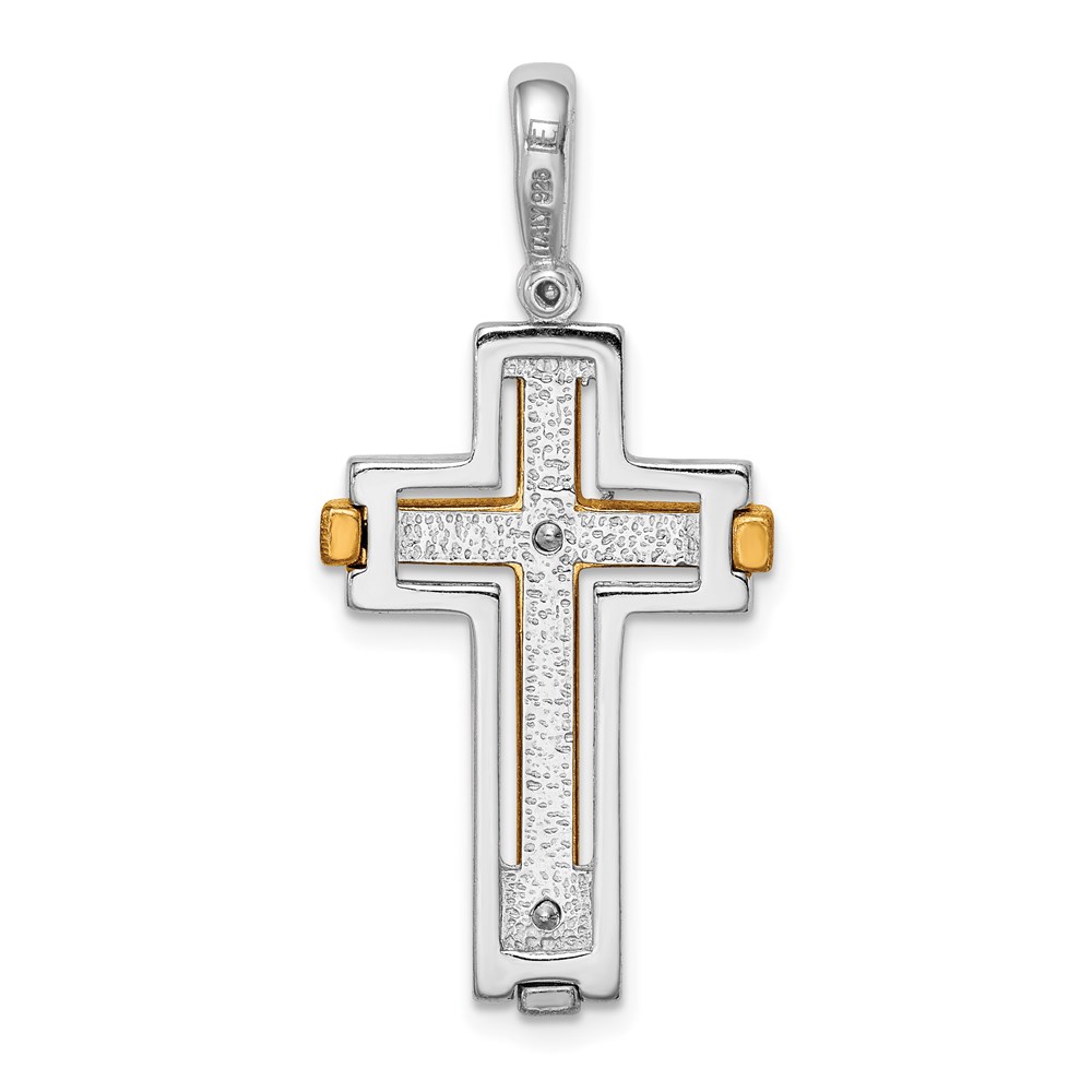 Sterling Silver Rhodium-plated & Gold-tone Brshd/Polished Cross Pendant