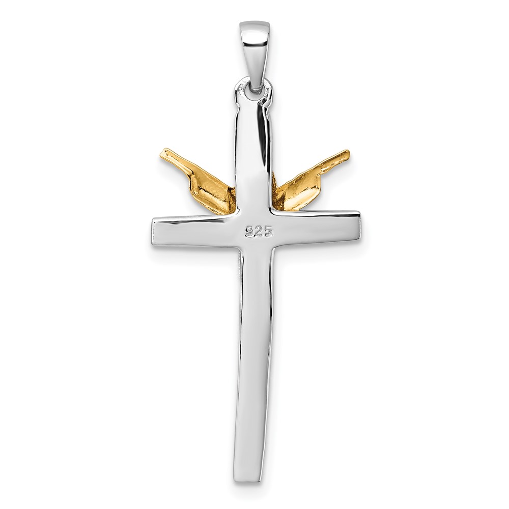 Sterling Silver Rhodium-plated Gold-tone Crucifix with Raised Arms Pendant