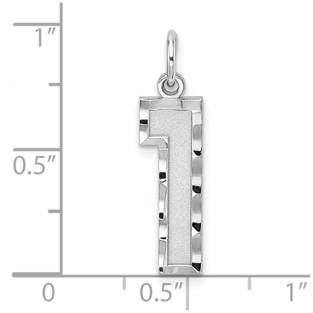 Sterling Silver Rhodium-plated Large Diamond-cut #1 Charm