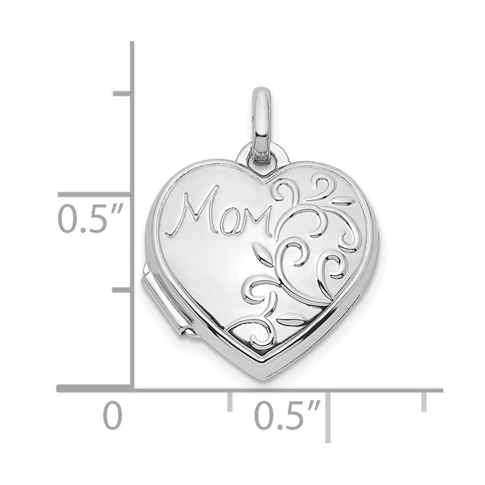 Sterling Silver Rhodium-plated Mom 15mm Heart Locket