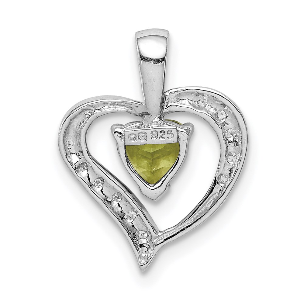 Sterling Silver Rhodium Plated Peridot and Diamond Heart Pendant