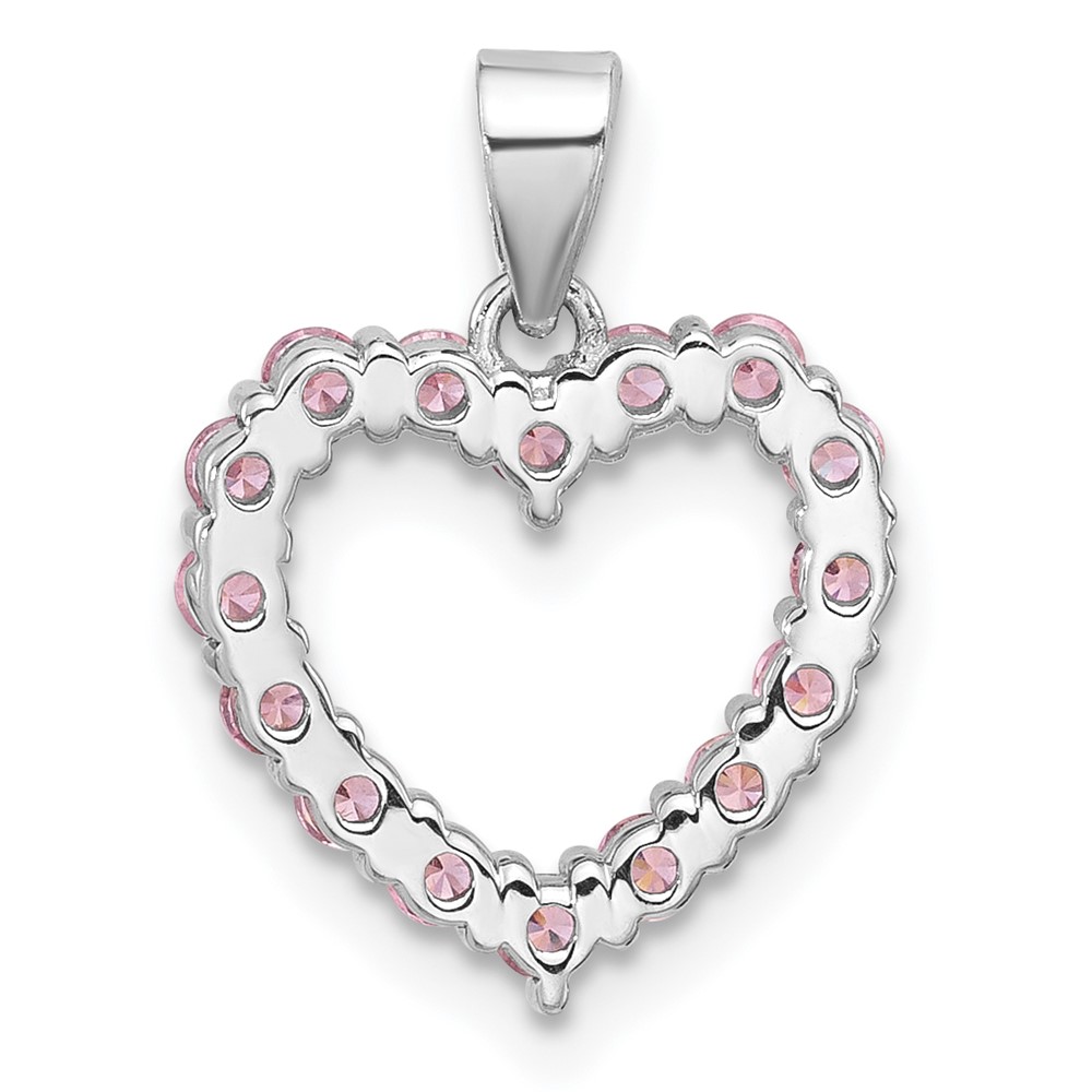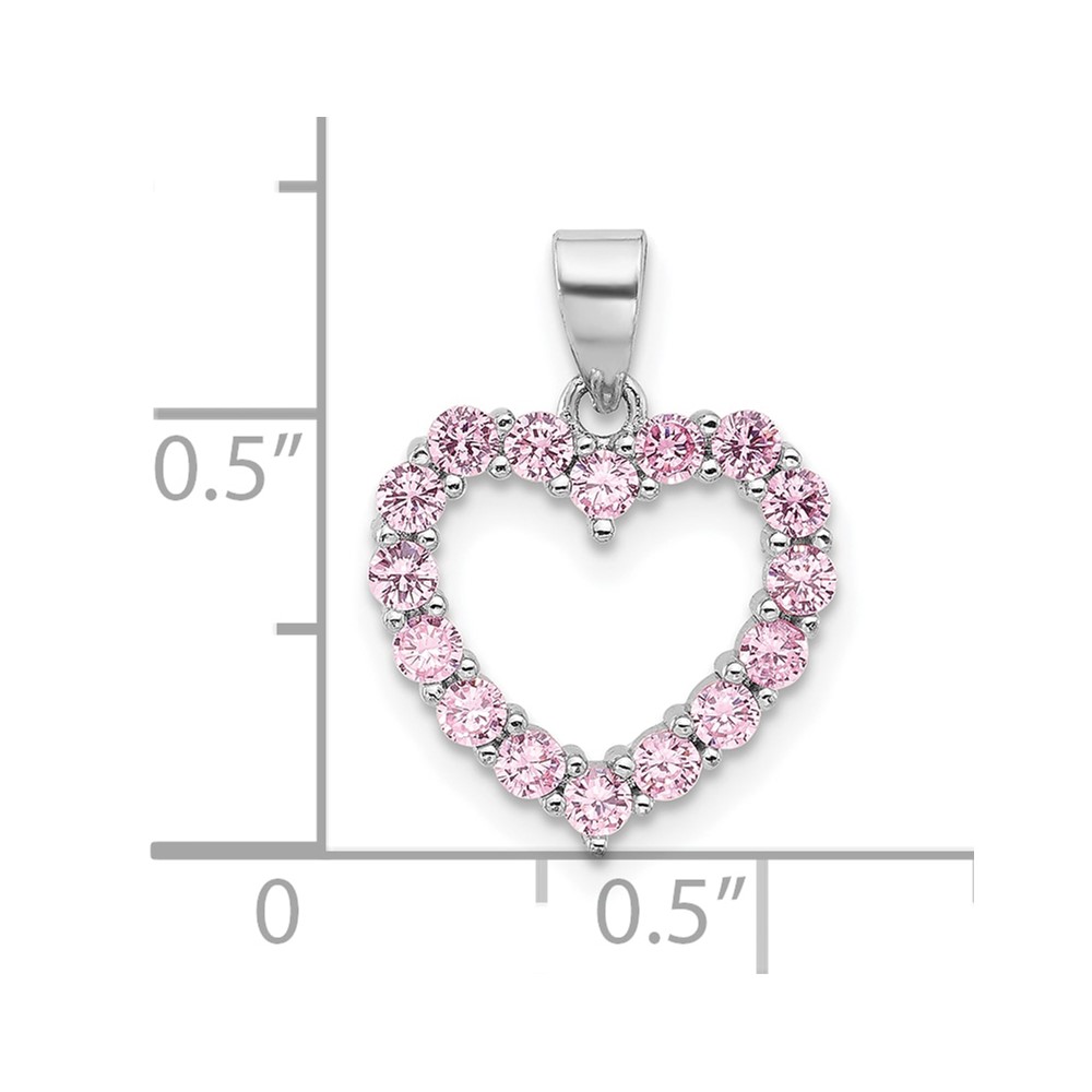 Sterling Silver Rhodium-plated Pink CZ Heart Pendant