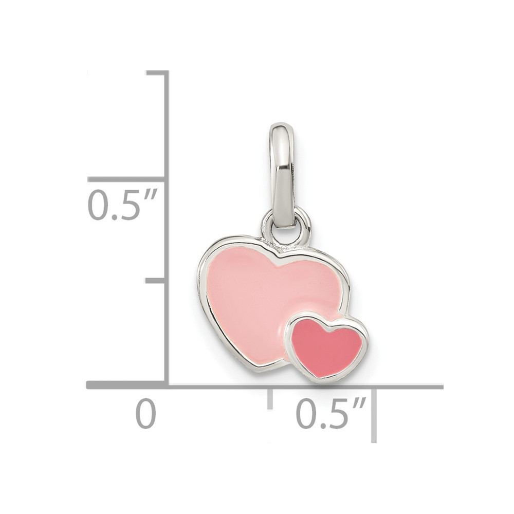 Sterling Silver Rhodium-plated Pink Enamel Double Heart Pendant